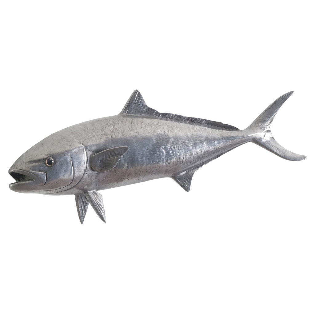 The Yellow Tailed King Fish Wall Sculpture is made of composite in a polished aluminum finish. This likeness of the seafaring creature is a chameleon of style—hang it in a modern kitchen and it takes on a zesty panache; place it in a child’s bedroom and it will become a playful element in the space. Whether you have a lakefront home, a beachfront condo, or an urban oasis, the Yellow Tailed King Fish Wall Sculpture with its luminous finish will bring the watery world inside. Powerful on its own, group this sculpture in multiples to create a school of fish for added impact.