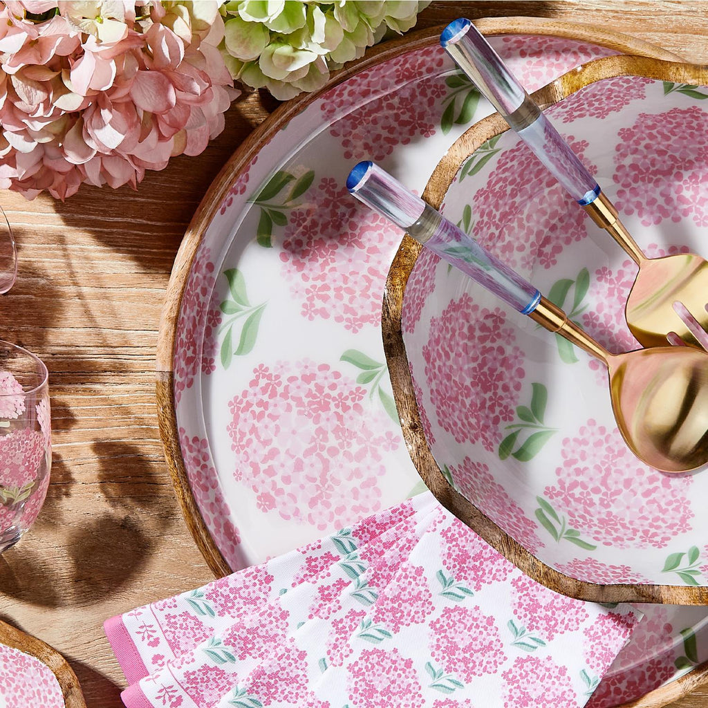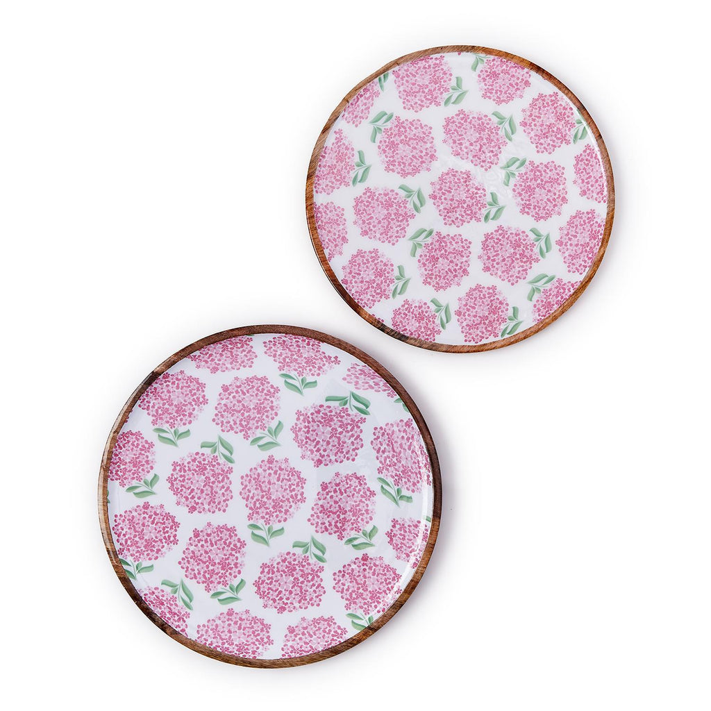 Pink Hydrangea Round Tray Set of 2