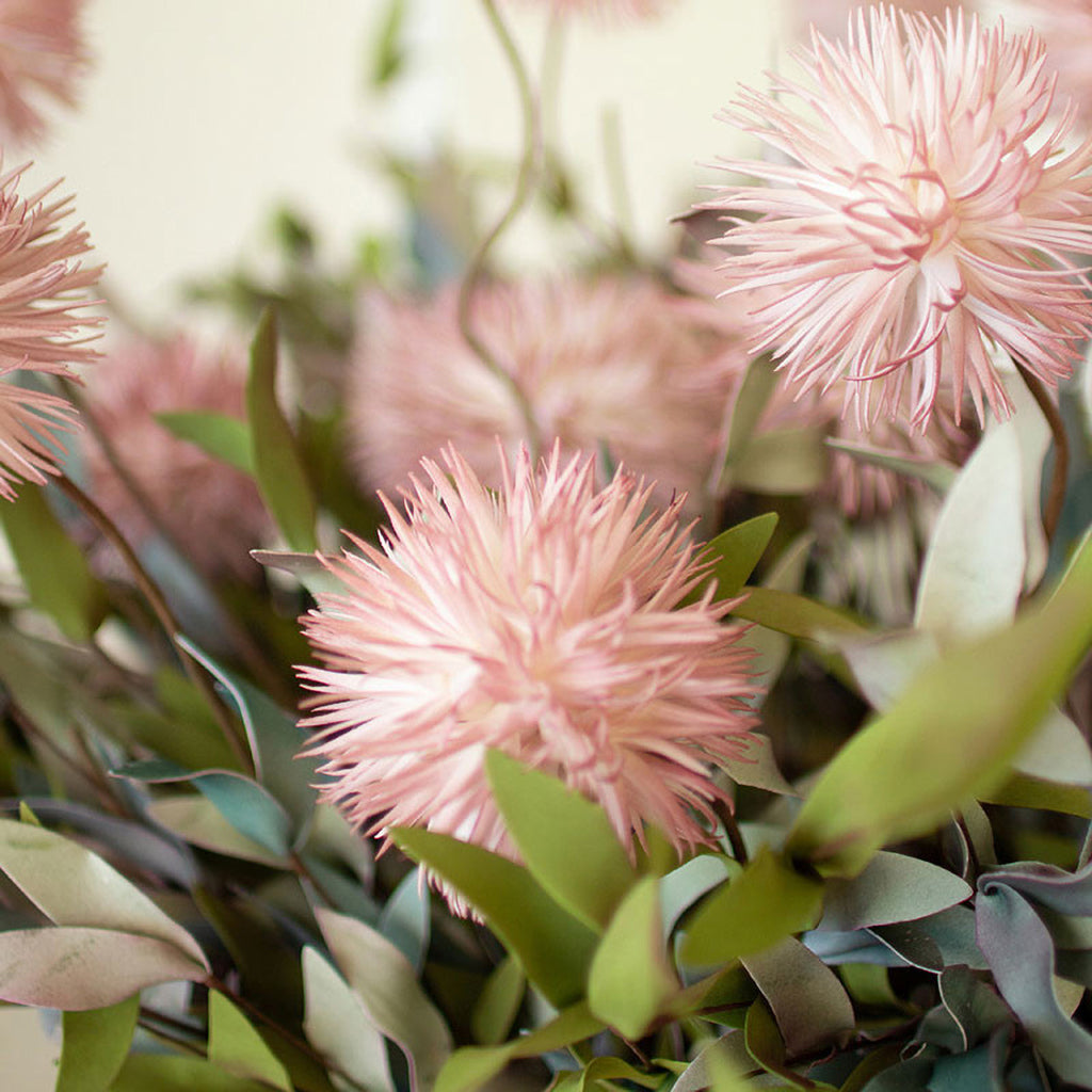 Add these soft pink petals to any springtime arrangement. These fluffy buds look good with other colors or add a pop to a bunch of greenery. Use these sprigs in your empty vases alone or with other springy stems.