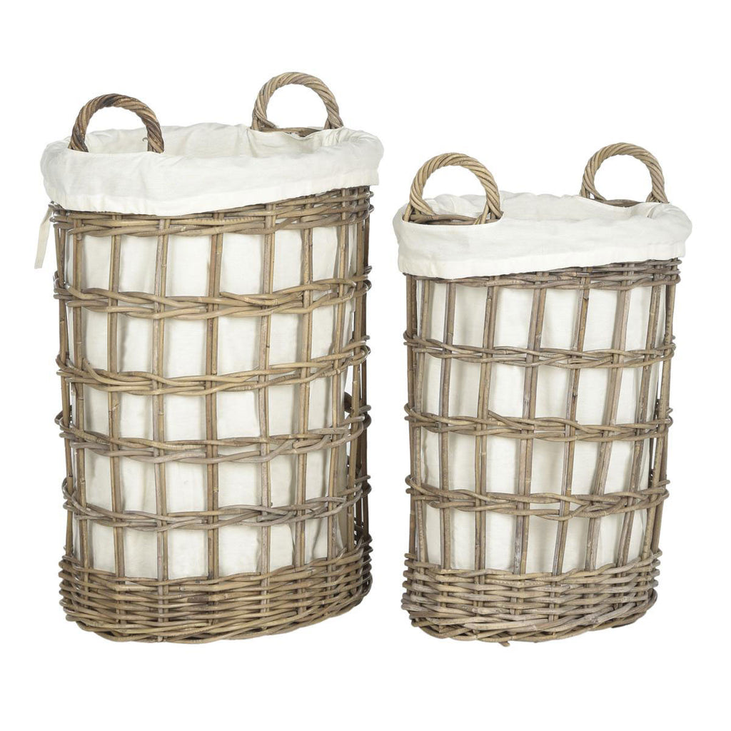The utilitarian hamper gets a fashion makeover in this stylish natural basket style updated by master weavers with contemporary cutouts in its kubu rattan form. Easy to carry with one basket fitting inside the other, self handles and even easier on laundry day with a removable cotton liner.