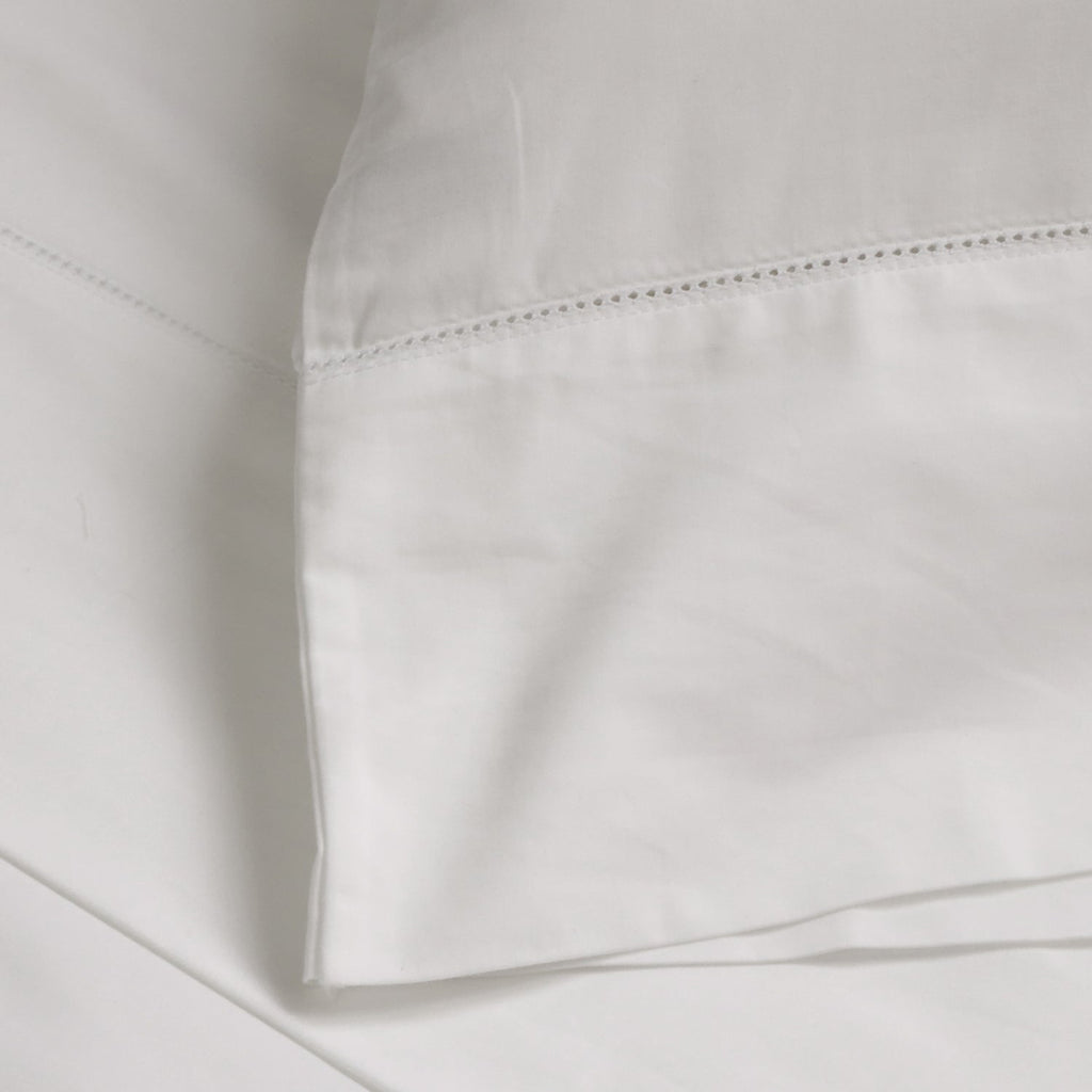 The Pom Pom at Home Classico Hemstitch Cotton Sateen Sheet Set is an effortlessly sophisticated collection with a delicate hemstitch detail adorning the 3" flange. The sheet set includes a fitted sheet, flat sheet, and a pair of pillowcases. Twin set includes 1 pillowcase.