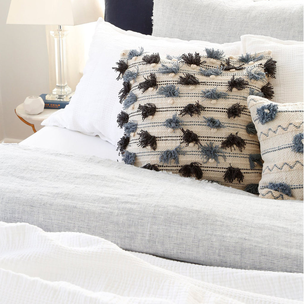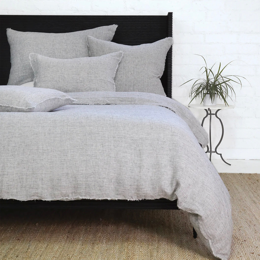 Subtle frayed edges of soft linen add a dash of unexpected detail to this Pom Pom at Home Logan Collection. Woven with two different colored yarns for a heathered effect, the duvet cover and shams feature shell button closures.