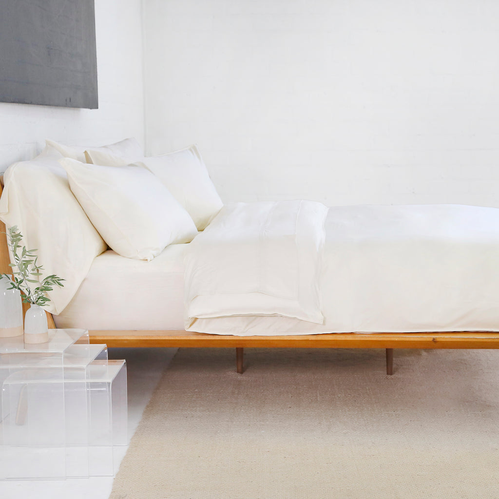 Stay in bed all day with the softest duvet cover you have ever felt! The Pom Pom at Home luxurious 100% Bamboo Duvet Cover Set is silky-smooth, with a beautiful drape, and soft sheen. It is naturally breathable and hypoallergenic. The duvet cover set includes 2 shams. Twin set will include 1 sham.