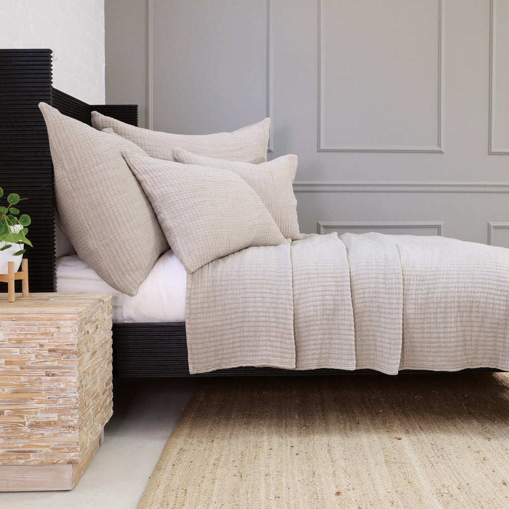 Add textural interest to your bed with the Pom Pom at Home Vancouver Coverlet. Made of a lightweight stonewashed cotton gauze with an interwoven ivory stripe, it is the perfect addition to your bed to create a relaxing space.