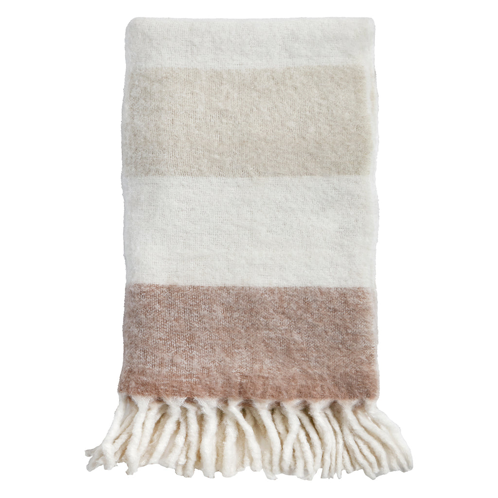 Wrap yourself in the cozy elegance of the Whistler Plush Faux Mohair Throw in Natural. Woven from 100% polyester, this ultra-soft throw mimics the luxurious feel of mohair. The color-block pattern offers a modern, minimalist touch that blends effortlessly into any space- whether draped at the foot of a bed, over the arm of a sofa, or your favorite reading chair. Finished with soft fringe ends for added texture and movement, this throw brings both comfort and understated style. Lightweight yet warm, it’s the perfect companion for quiet mornings or chilly evenings. Carefully crafted and endlessly cozy, it’s a versatile accent piece you’ll reach for season after season.