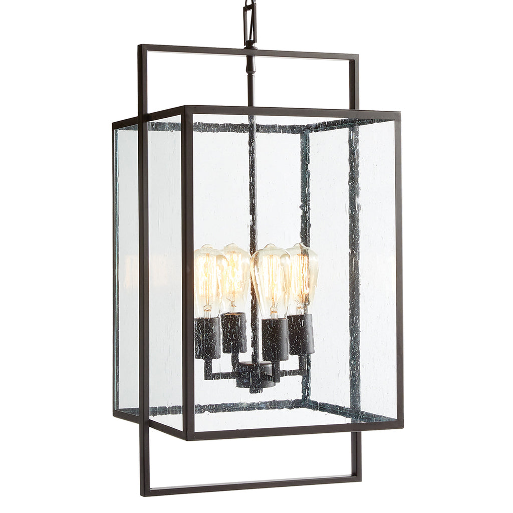 Impressively scaled with seeded glass and a beautiful oil rubbed bronze finish are what makes this pendant a real showstopper. Magnificent for entry, foyer or hall.