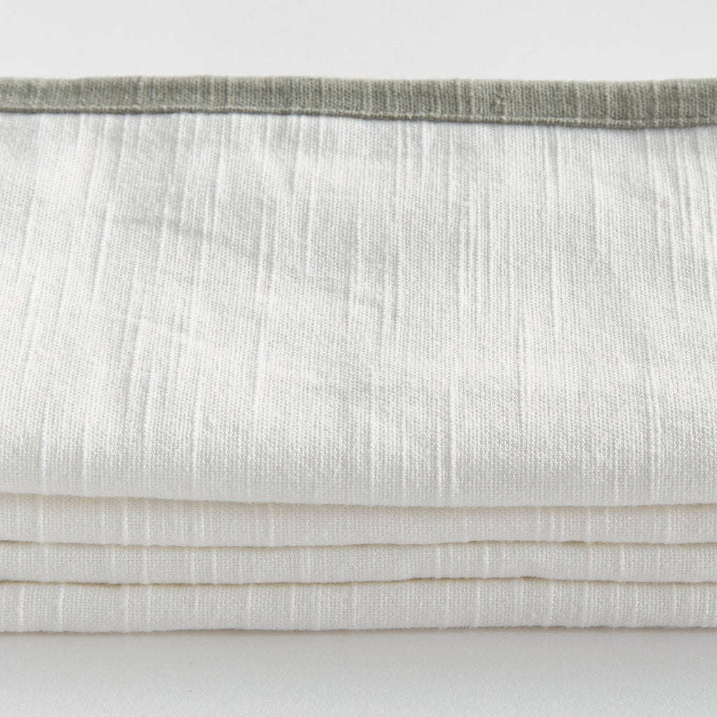 Bring a touch of softness to the table with this set of four 100% woven cotton napkins. Beautiful in tone and texture, the white & blue combination is made to add a pop of color to any tablescape.