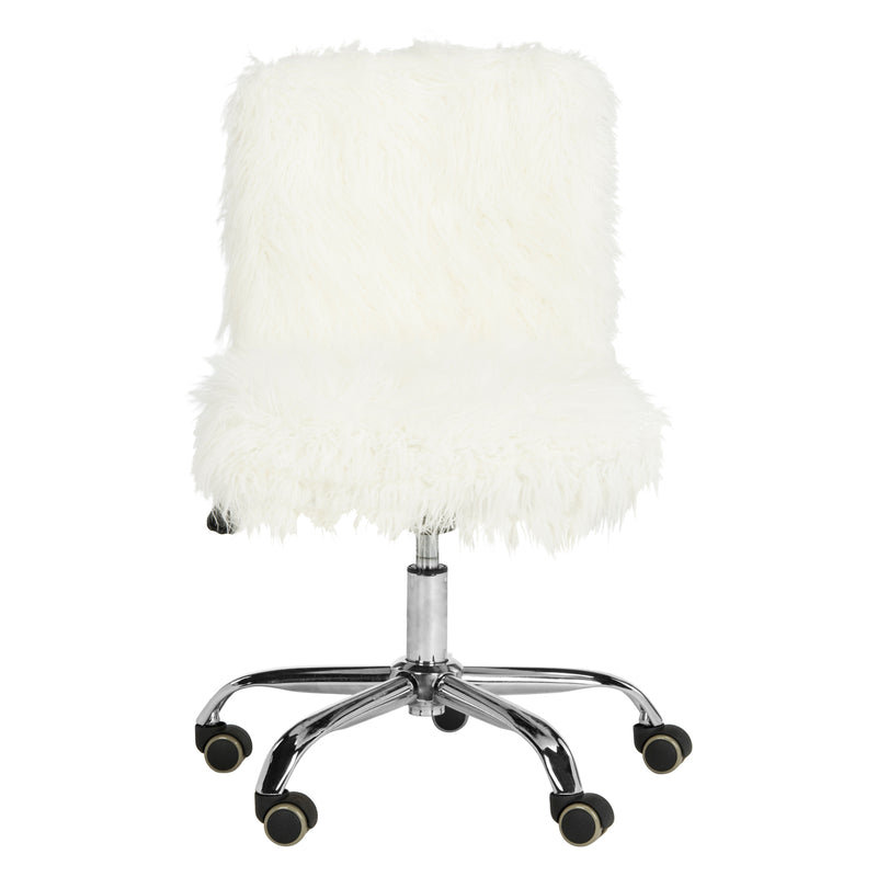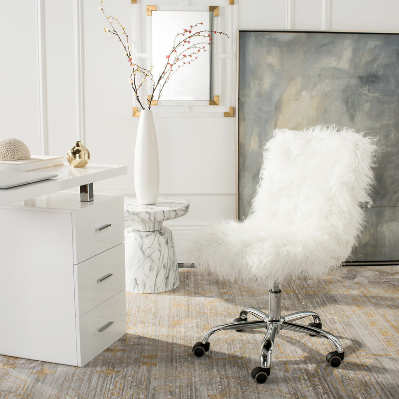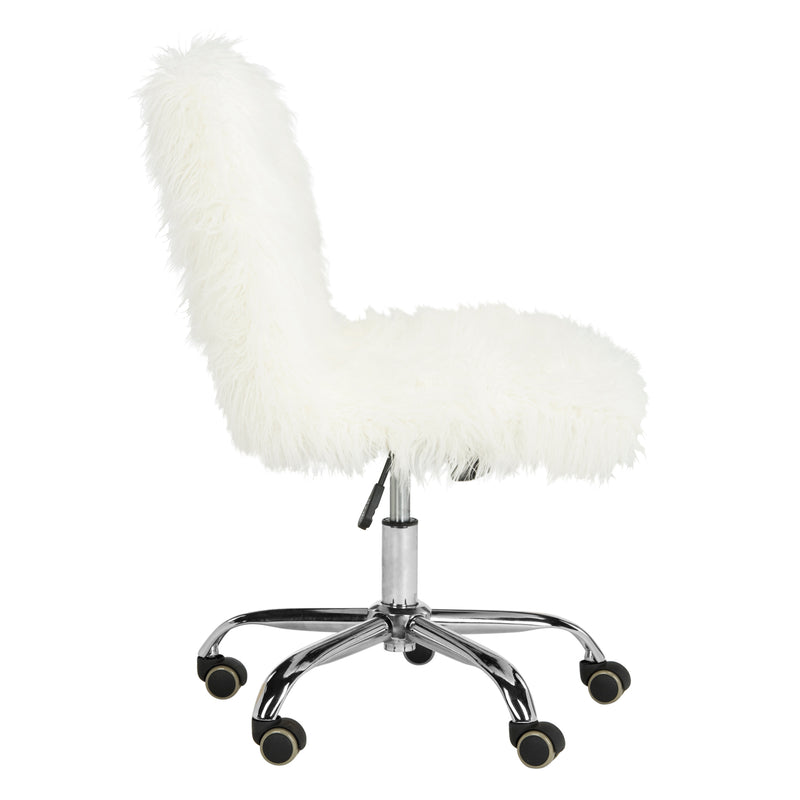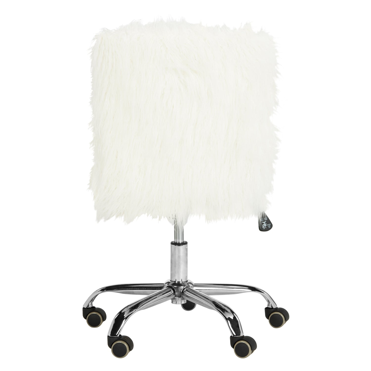 Transform any office into a glamourous work space with this contemporary faux sheepskin swivel Ravin Office Chair. Navigation is a breeze with its polished chrome legs and swivel mechanism, and sitting atop its chic upholstery makes any occupation a dream job.