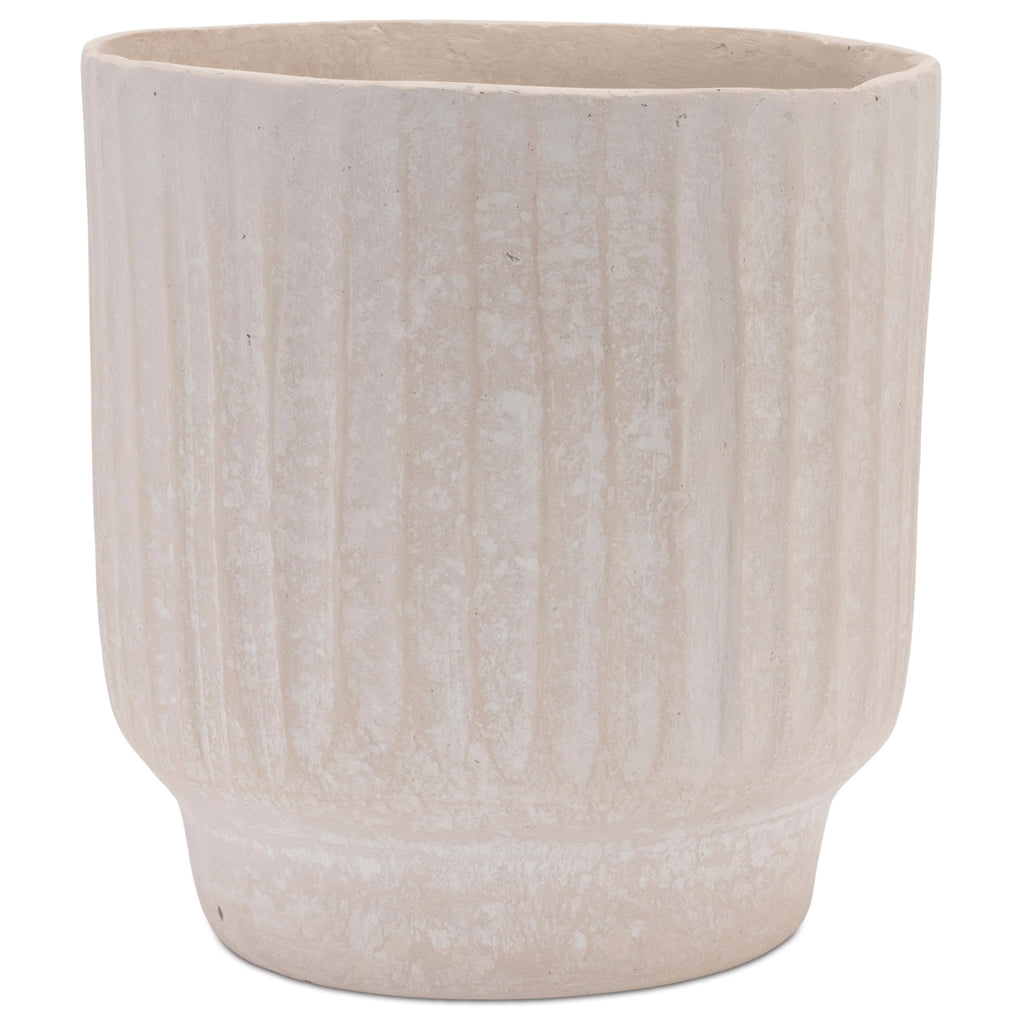 Enhance your home with this beautiful Recycled Material Vase. This piece is a great fit for your country cottage or farmhouse style of decor. The cool beige tones paired with the rustic distressed finish is perfect to create a stunning display. The eco-friendly recycled paper and chalk powder composition is sure to last for seasons to come. Complete the look by adding a bunch of dried florals or fresh garden flower stems to the vase, or gift it to a loved one to share the beauty!