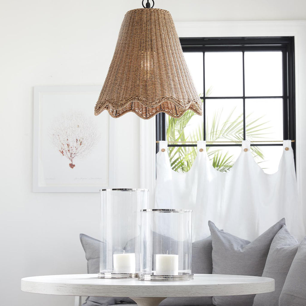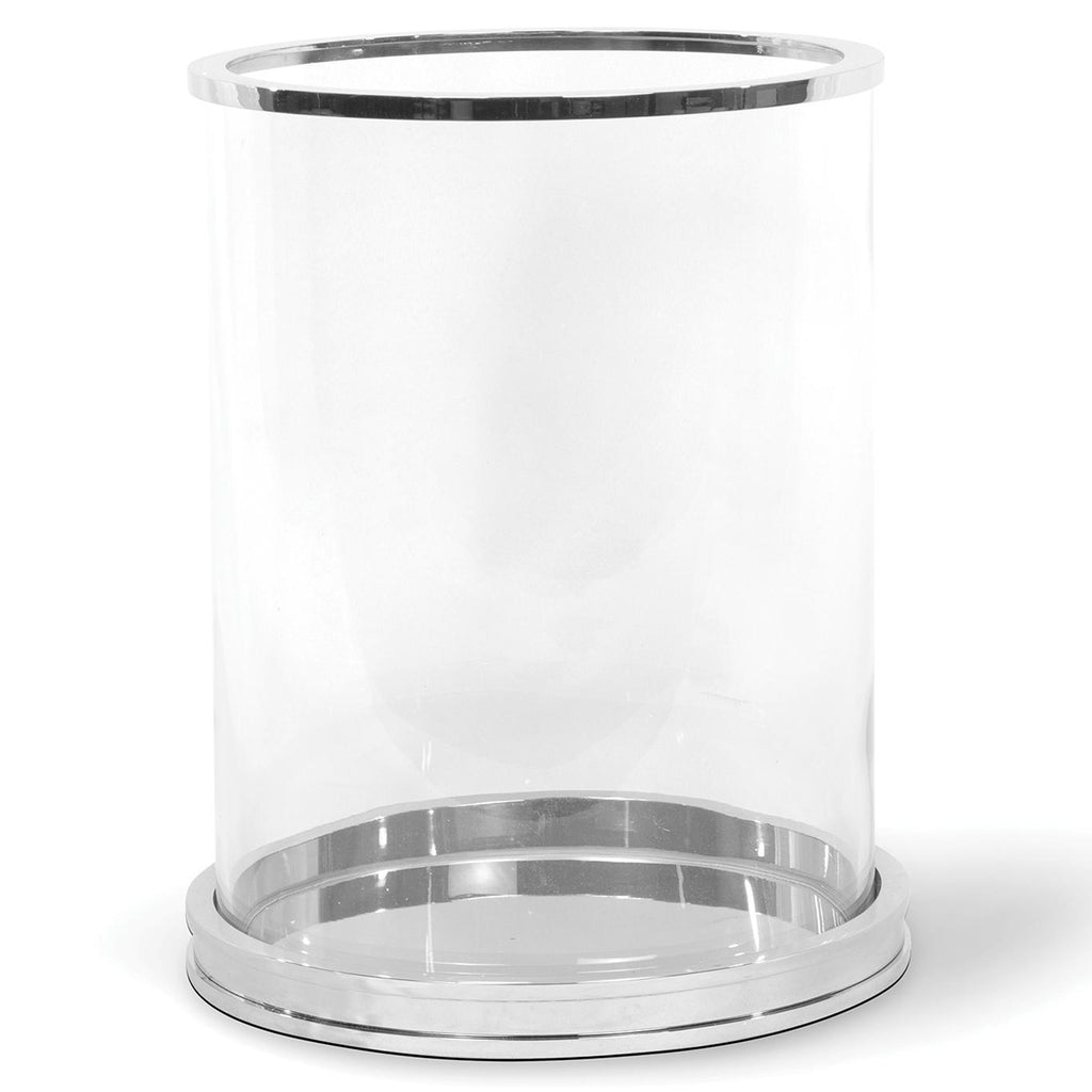 Create a sophisticated centerpiece for your next dinner party, or add elegance and height to any tablescape with the Regian Andrew Adria Hurricane. The tall glass cylinder is finished with a metal base and trim, making it the perfect vessel to let the soft glow of your favorite candle shine through.
