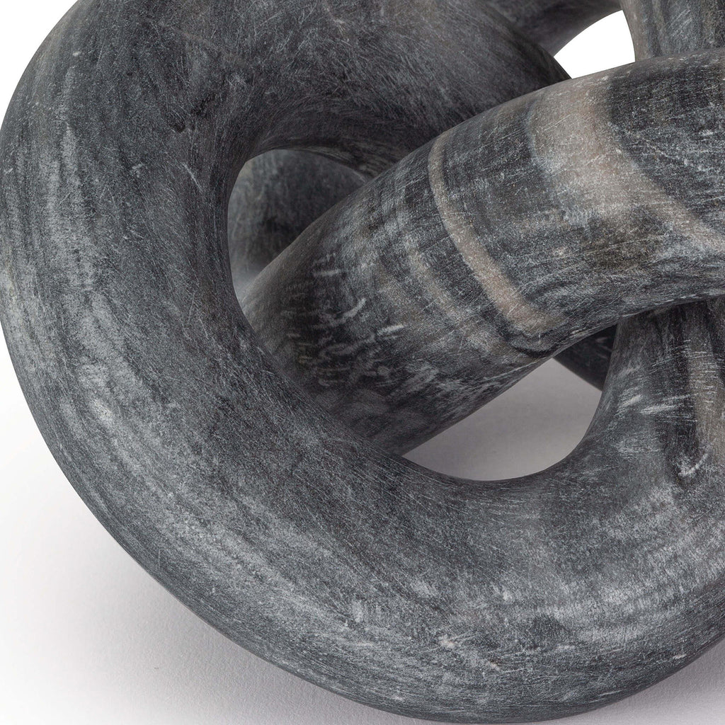 Hand-carved from a single piece of stone, this abstract sculpture weaves about creating a flowing singular form. Add this modern tabletop accessory to your living room or bedroom.