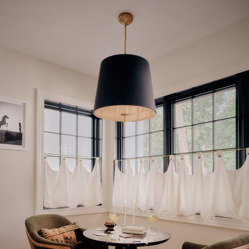 Inspired by our signature Clove Buffet Lamp, the Small Clove Pendant with two shade options, offers understated sophistication and balance to your home. Select the dramatic black linen shade, finished in antiqued gold or the classic white linen shade to add a soft illumination to your space.