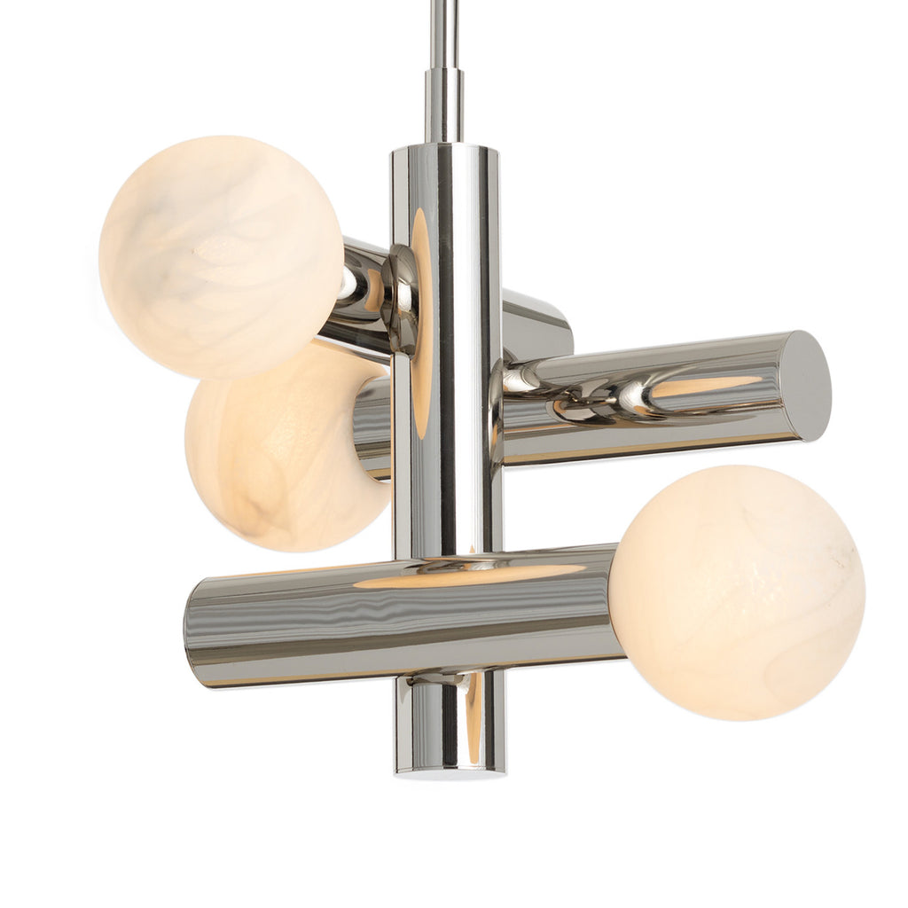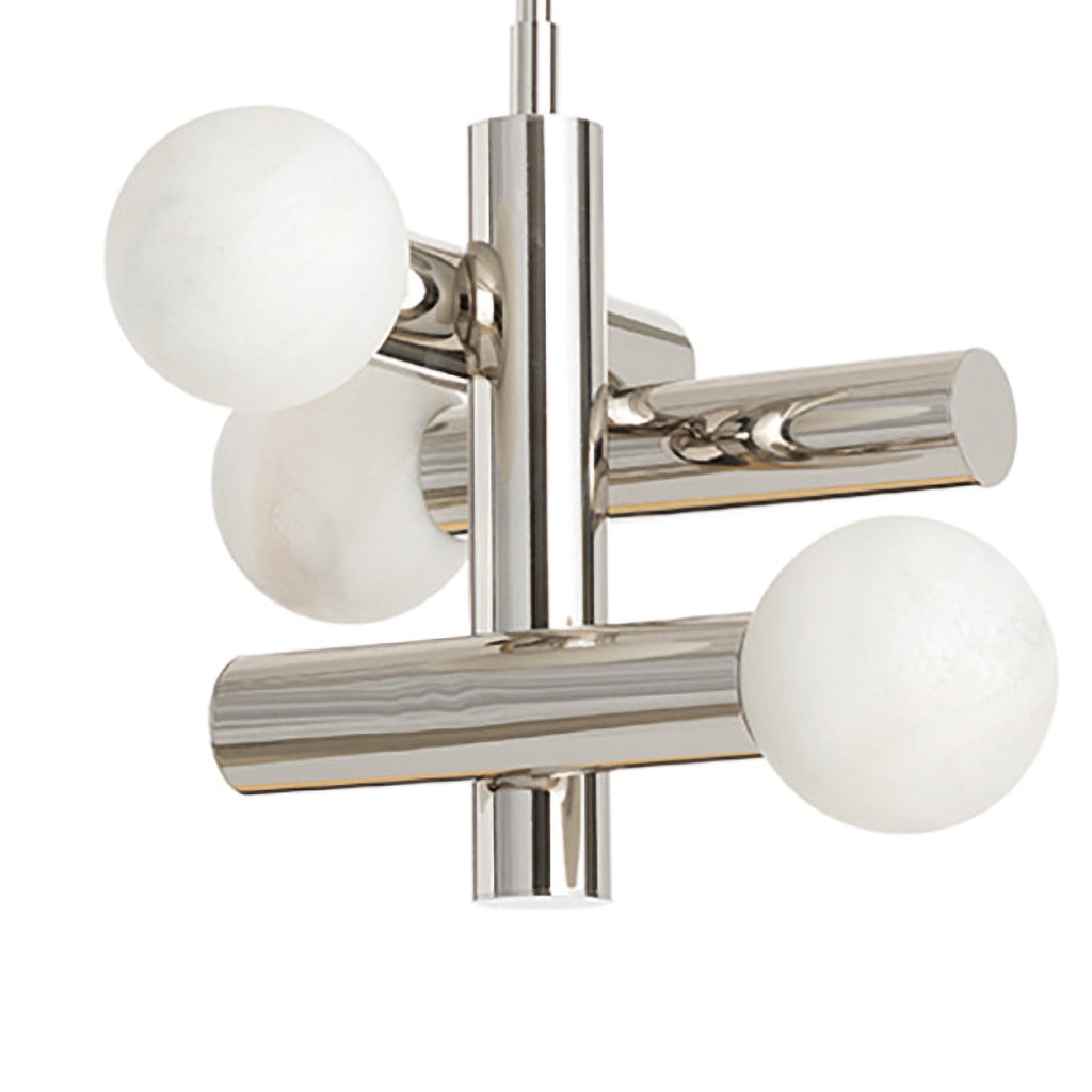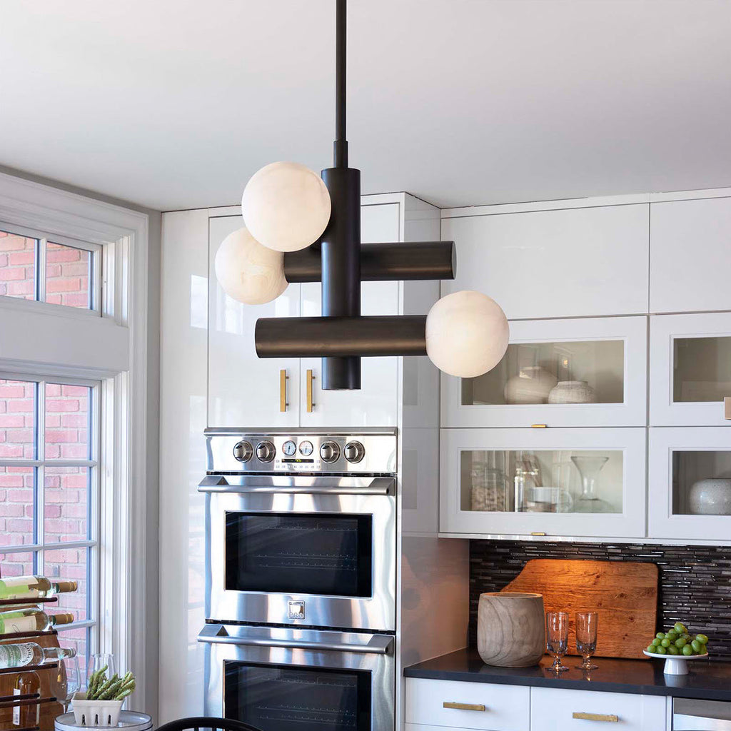 The Dion Pendant effortlessly channels the mid-century modern aesthetic with its sleek design. Featuring a metal base and an alabaster-like glass globe, this pendant exudes contemporary elegance. Ideal for various spaces such as entryways, dining or living areas, the Dion Pendant stands as a versatile statement piece, offering warm illumination to any room.