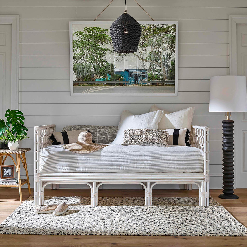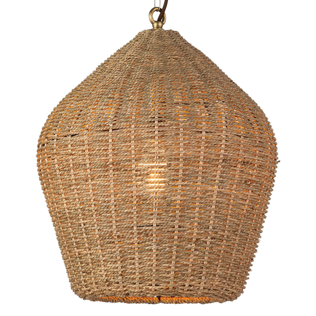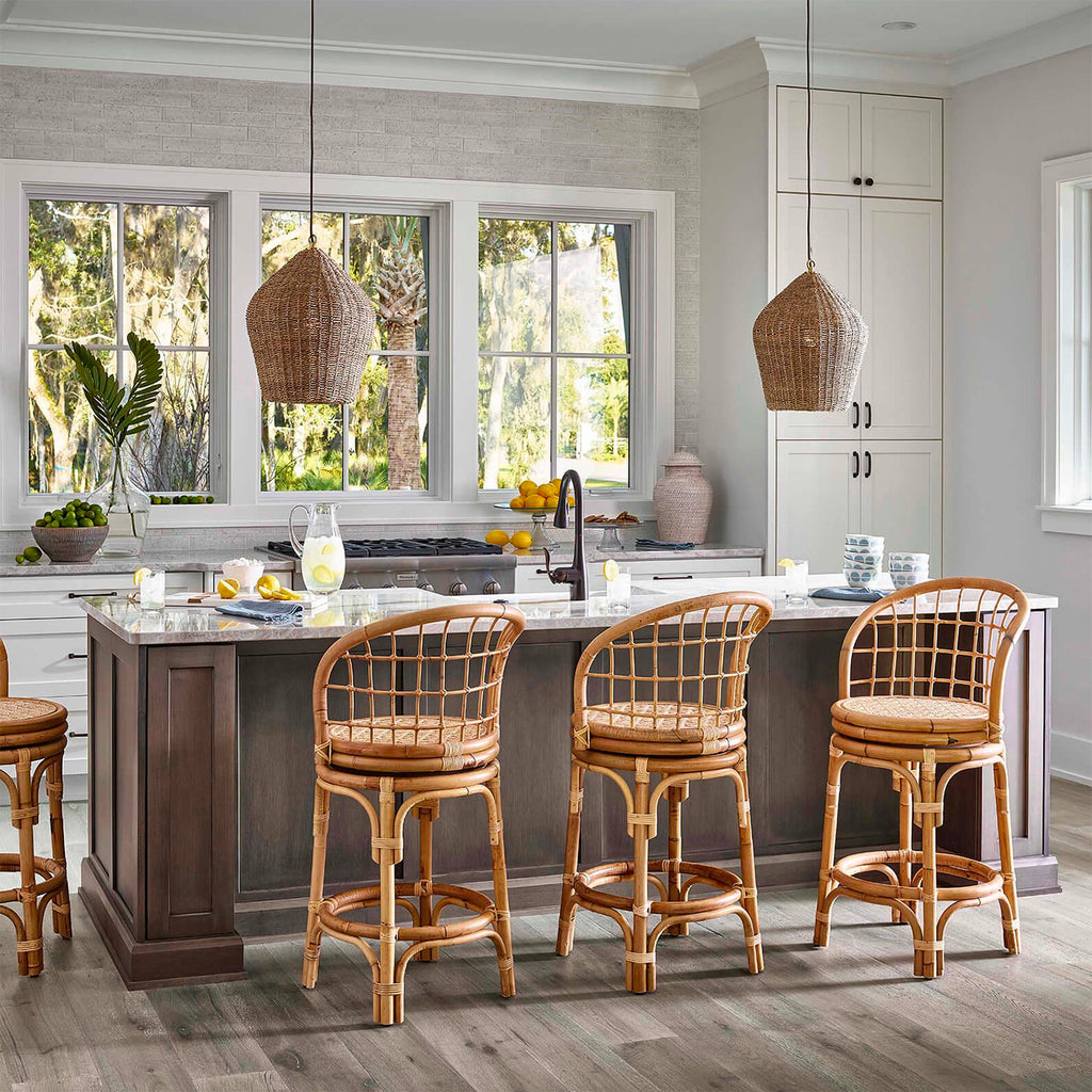 Rattan, contrasted by gold hardware, is striking on the Georgian pendant. Perfect for an eclectic abode or modern digs, the natural material adds an organic appeal but finish choice adds a contemporary edge.