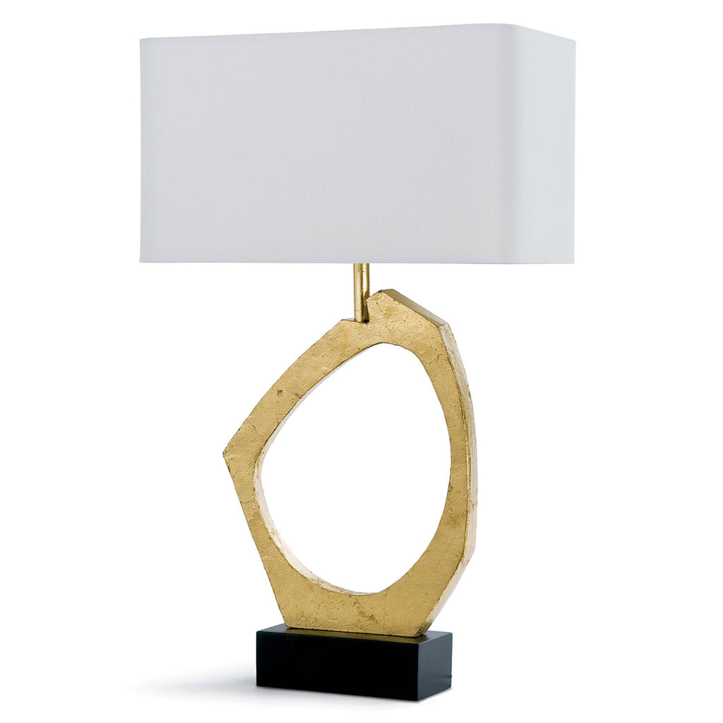 The Regina Andrew Manhattan table lamp's statuesque presence captures attention in modern living rooms and bedrooms. In elegant gold leaf, this chic lighting fixture intrigues in an abstract design.