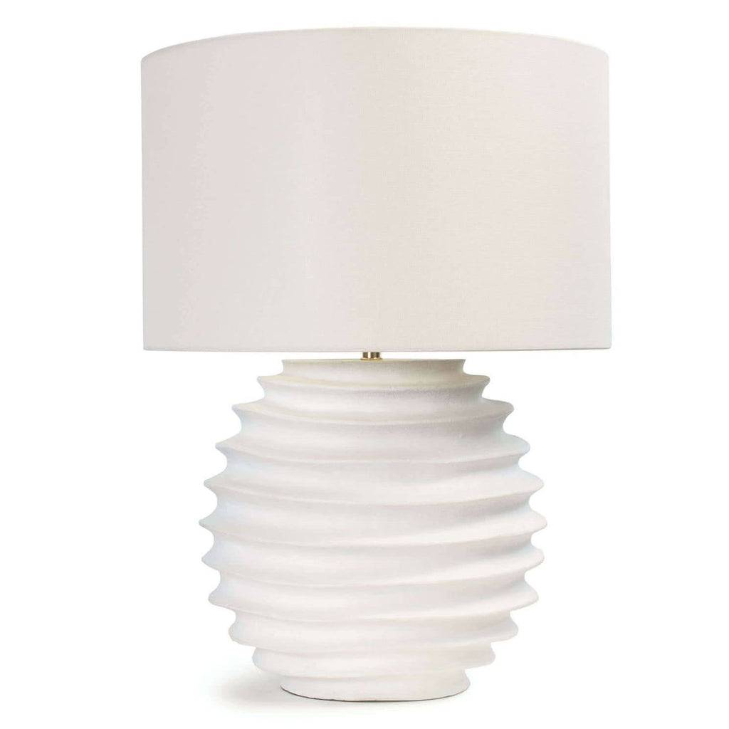 A tactile white finish on the Regina Andrew Nabu table lamp accentuates its accordion-like base. Its simple air yet artisan feel would make for a beautiful welcome in an entryway.