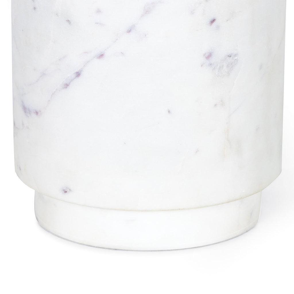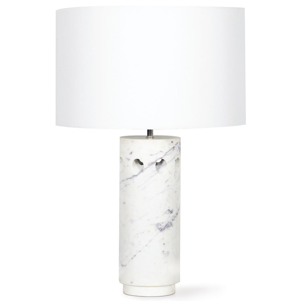 Set in dramatic white marble with purple veining that gives a sense of movement, the Odin table lamp features a modern design set with organic materials. The sleek silhouette is accented by a series of angled apertures along the top that gives a peek into the depth and thickness of the marble design.