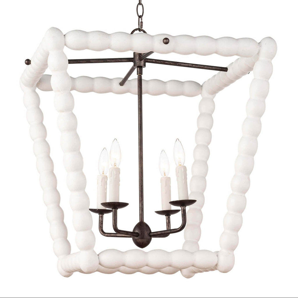 Hand-lathed from solid wood and finished for a rustic chic effect, the Perennial Lantern is a perfect choice for dining rooms, kitchens, or entrances that are in need of a statement piece. The added faux drip wax details on the candle sleeves add a relaxed coastal style.