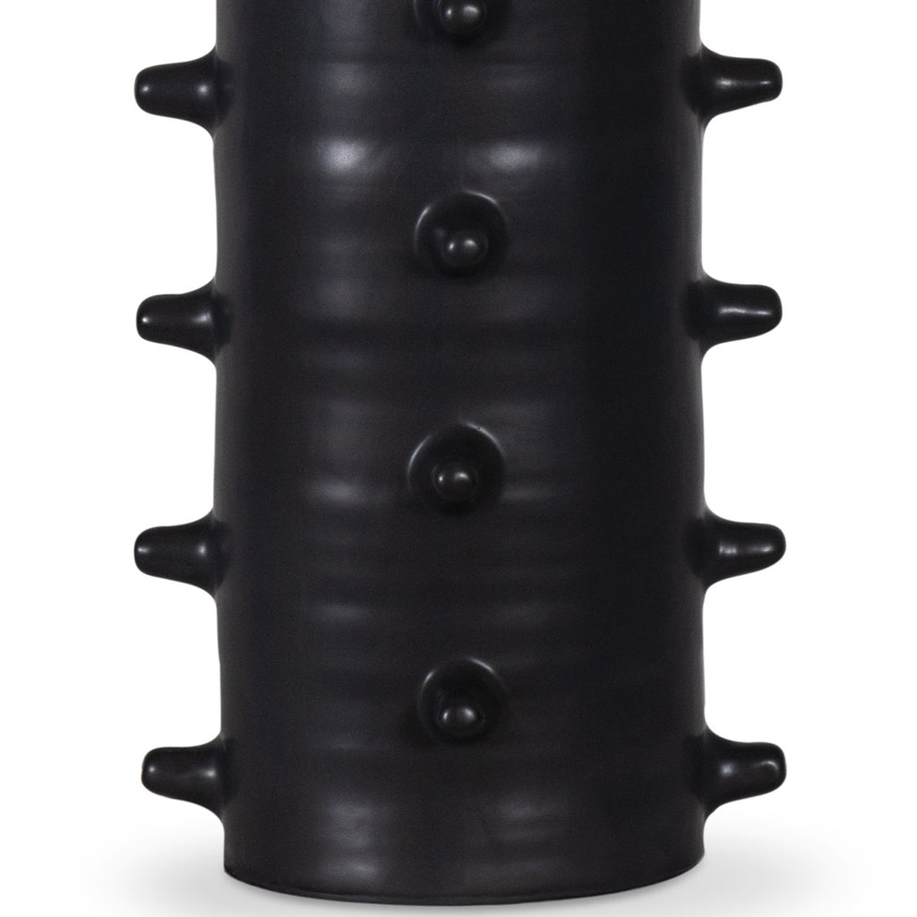 The Spruce Ceramic Table Lamp blends modern aesthetics and functional design. With a rock n' roll edge, the lamp is composed of a sleek black base with distinctive protruding nodules, creating the effect of a piece of art. Perfect for bedside tables, home office or living room to add a unique touch.