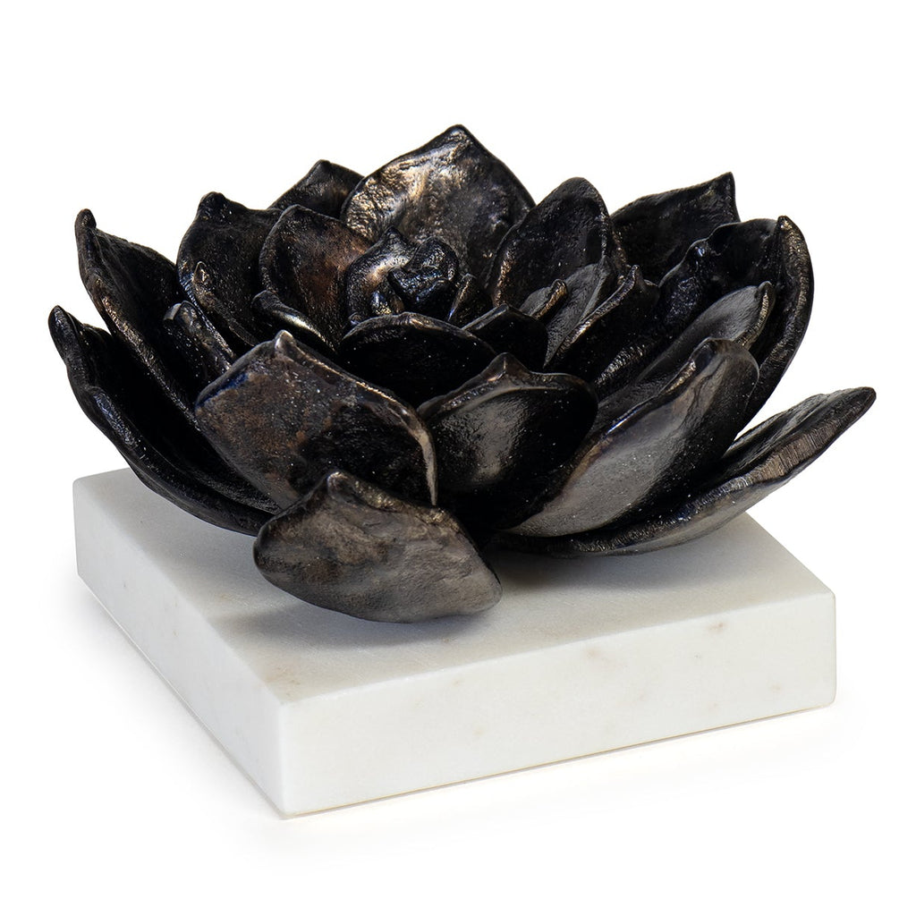 Create a focal point on your coffee table, credenza, or bookcase with this blackened zinc succulent planted on a marblel base. The perfect piece to add a touch of glamour and style to your home.