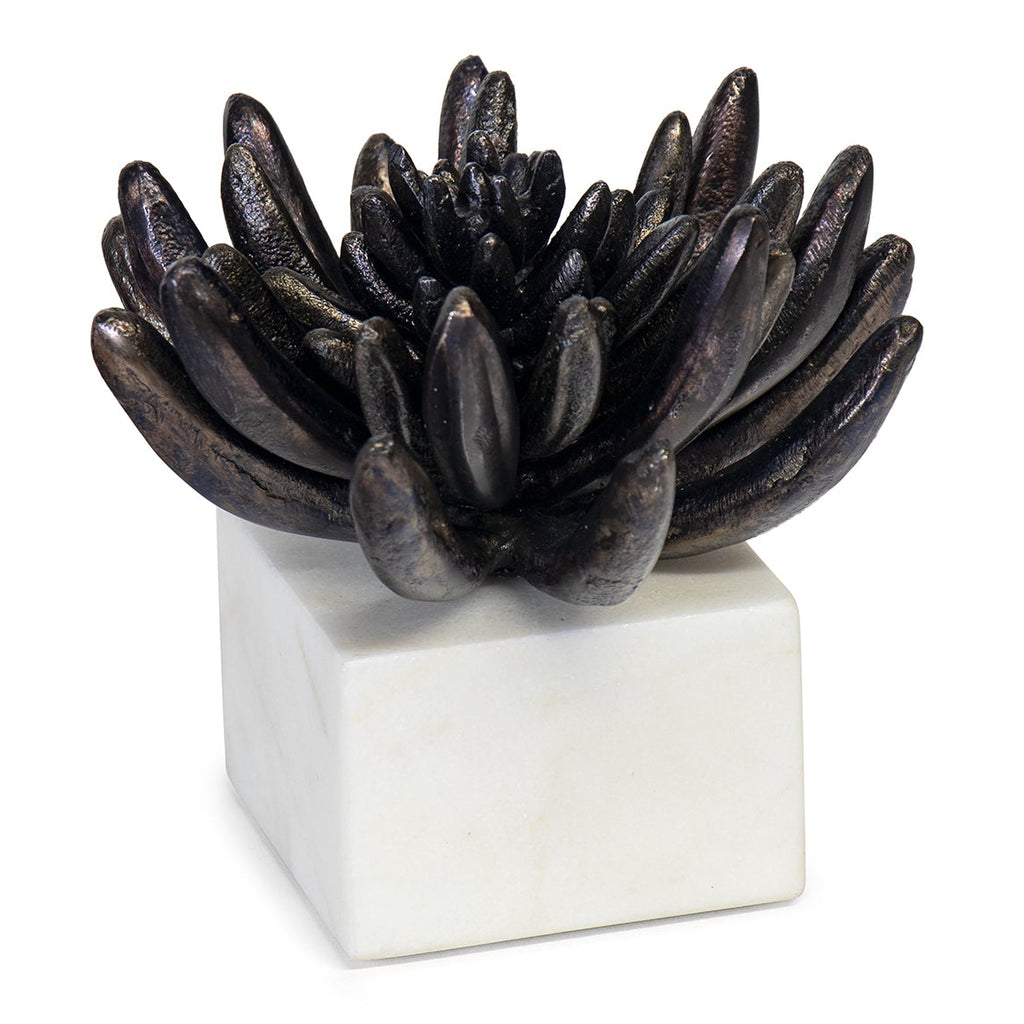 Create a focal point on your coffee table, credenza, or bookcase with this blackened zinc succulent planted on a marble base. The perfect piece to add a touch of glamour and style to your home.