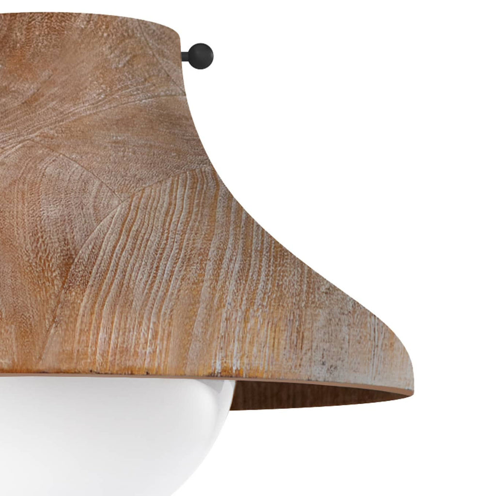 Surfside's white-washed, limed oak finish creates a relaxed look and brings out the wood grain texture of this fixture's sleek shade. The shade houses a beautiful, milk glass globe for warm, diffused lighting. Place the Surfside Flush Mount in a hallway, over a sink or in a bedroom or low level ceiling area for added interest and relaxed, coastal style.