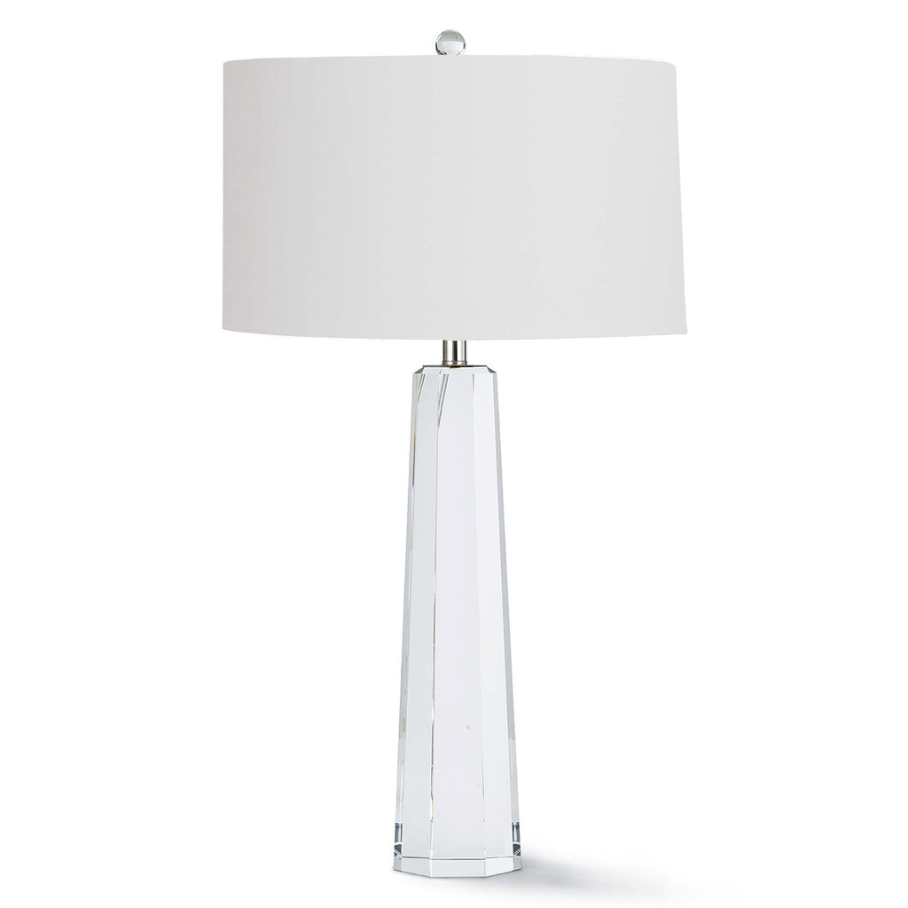 A beautiful, modern accent, this Regina Andrew table lamp intrigues in a living room or bedroom. Crafted from gorgeous crystal, this chic lamp showcases a timeless, tapered design to accommodate any style.