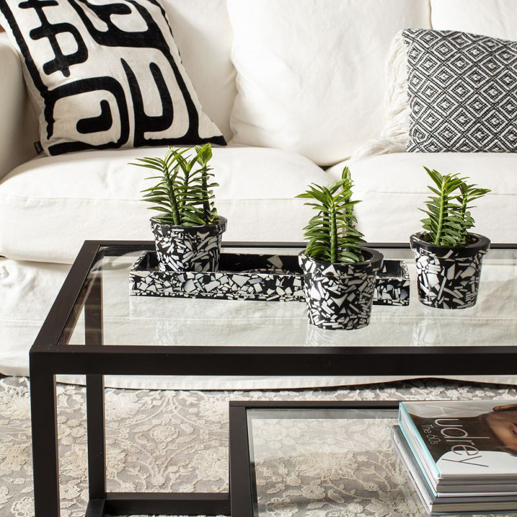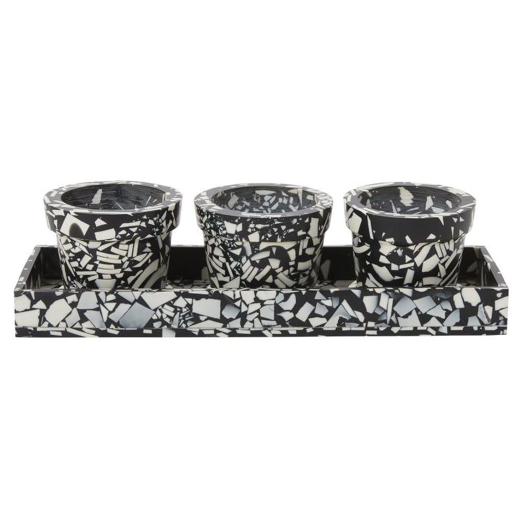 The Rigby Set is made of mixed-color resin, and looks like terrazzo, but is water tight and light weight. It features a long tray perfectly-sized for holding three cute pots. Drainage holes in each pot makes them simple to water and the deep lip of the tray will prevent spillage while adding style.