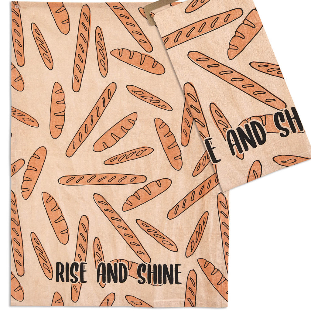 Cotton tea towel, individually wrapped for easy display. Features a corner hanging tab. 100% Cotton. Machine wash cold. Line dry. Warm iron on reverse.