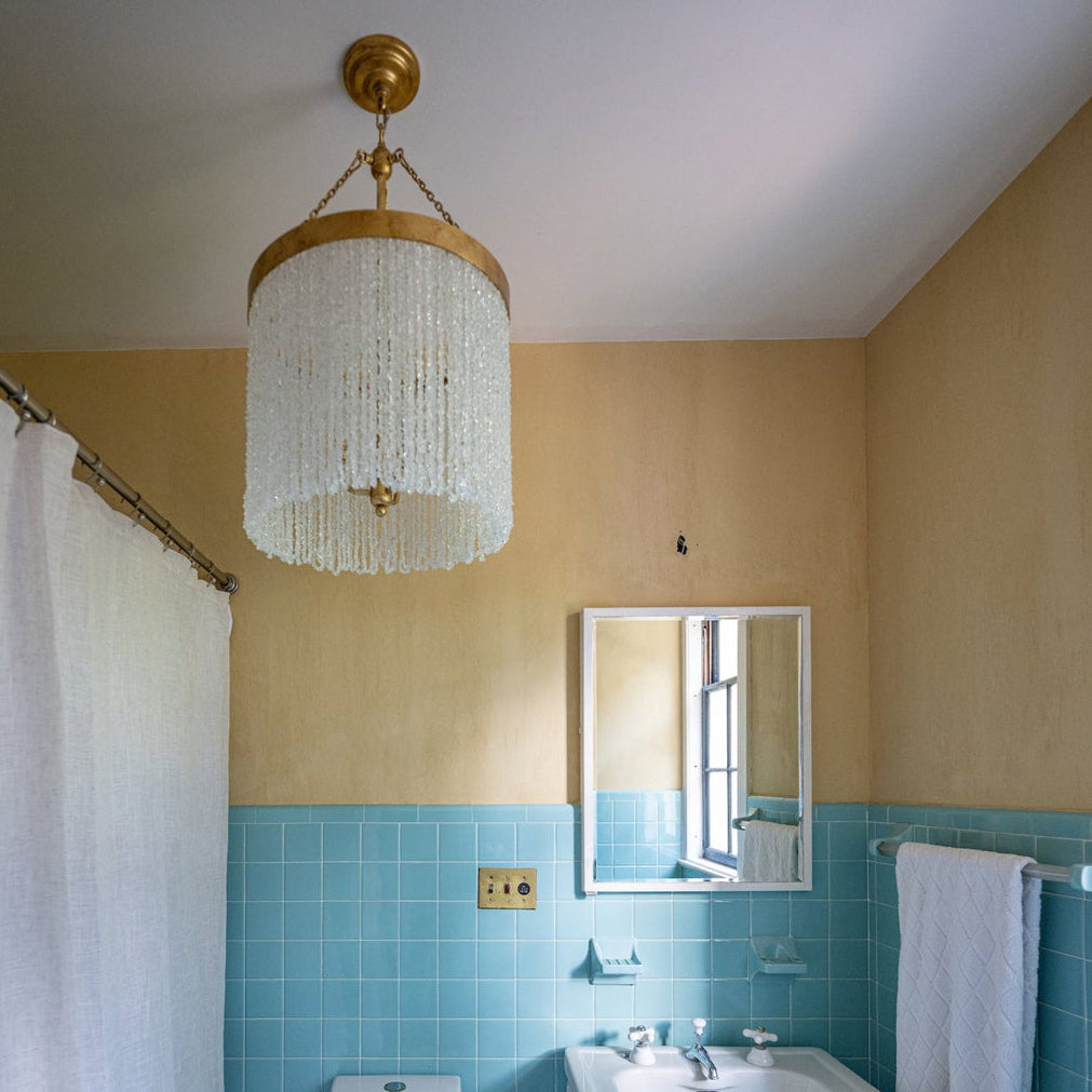 Our Collette 24 Round Chandelier, the larger version, projects distinctive poise through its secure build, commanding large rooms with sophistication.Please note that the beads for your chandelier or sconce will require assembly upon receipt. Our team is available to guide you through the installation process and ensure that your fixture is assembled to perfection.