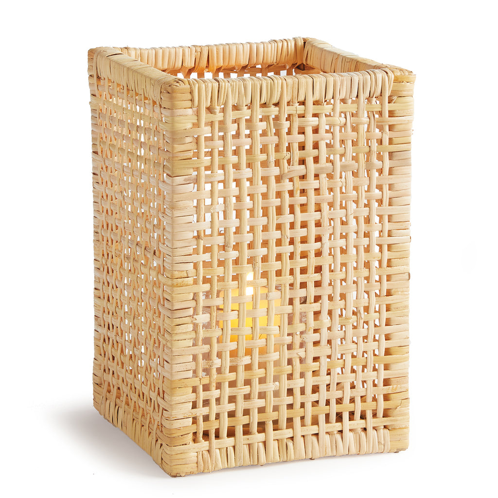 The tightly woven design and natural tones of the rattan make this hurricane stand out. Complete with a closed bottom glass insert, it may also be used as a vase. How sweet!