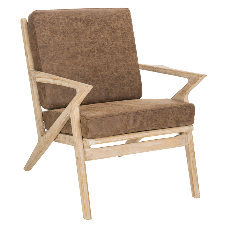 A blend of dynamic lines and soothing soft upholstery, this Ryland accent chair brings classic modern style to the living room. Designers love its Danish-inspired elm wood back, and its white washed finish and light brown upholstery are timeless.