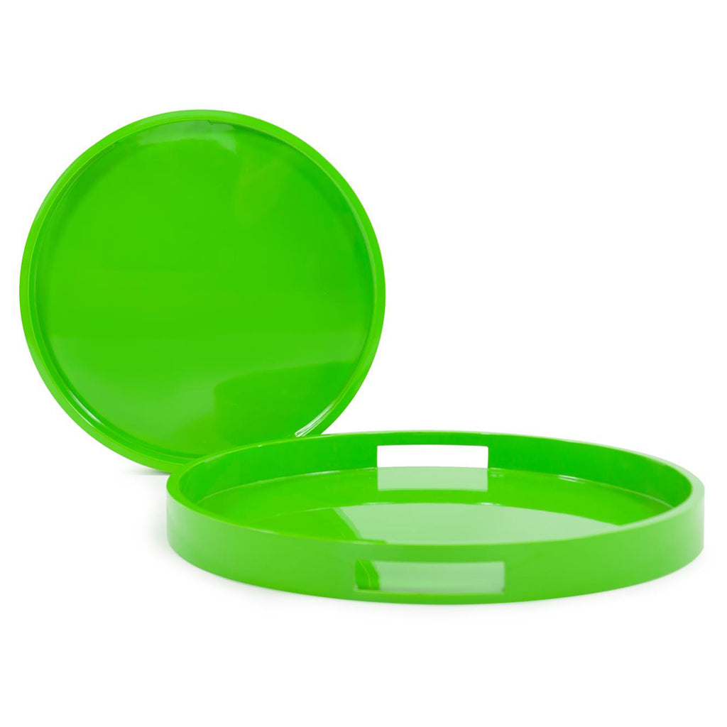 As soon as summer arrives, with it's warm breezes and bright sunny days, the beaches along the Mediterranean blossom with vibrant colors. From beach attire to accessories, everyone celebrates with a colorful display of casual coastal living. Our set of 2 round Saint Tropez trays in a beautiful summer color. These lacquered double handled wooden trays are hand crafted and finished by skilled artisans. Each of these trays will become not only your favorite accessory for the summer but year round as they add that pop of color to any special occasion.
