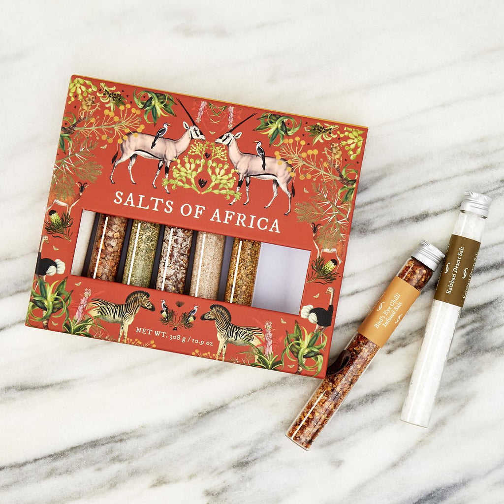 • Salt: Atlantic Fleur de Sel, Shisanyama Salt, African Herb Salt, Rooibos Infused Salt, Oak Smoked Salt, Cape Malay Salt, Bird's Eye Chilli Infused Salt, Kalahari Desert Salt