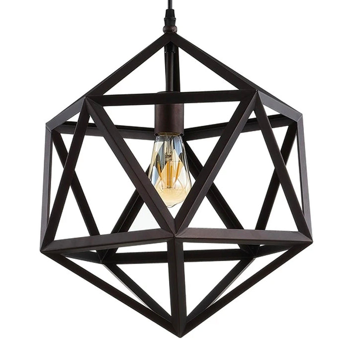 Bold and dynamic, this stunning contemporary pendant brings drama and character to any living room or entry. Its sculpted metal geometric form is finely crafted with the beauty of an iron finish. Designers love the luminous glow from its single bulb.