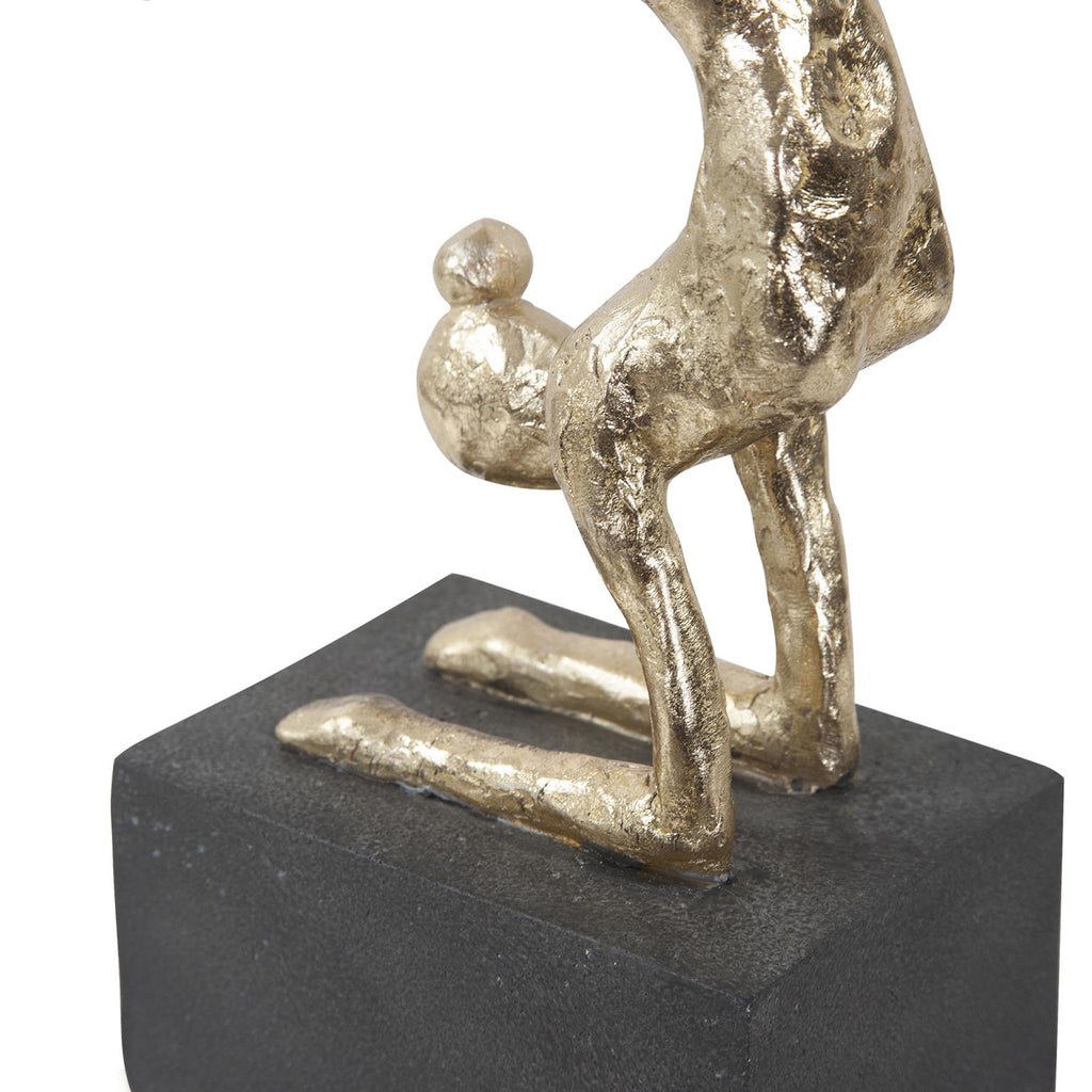 Balance and strength are two main components for this impressive scorpion pose. This yoga sculpture in brilliant gold stretches her legs upward and carefully bends each back one at a time to strength her core.