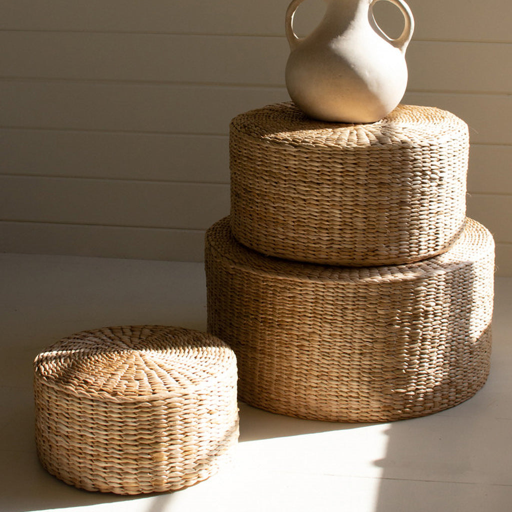 Stack these seagrass stools for a stunning showcase area. Separate them as risers for art objects or ottomans in playful spaces. Suitable for any room and purpose, these seagrass stools work in coastal, traditional, or modern decor.