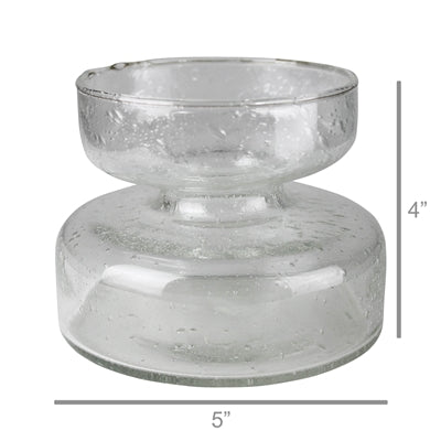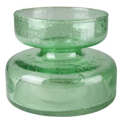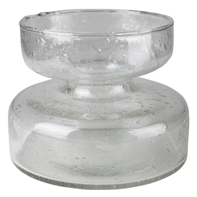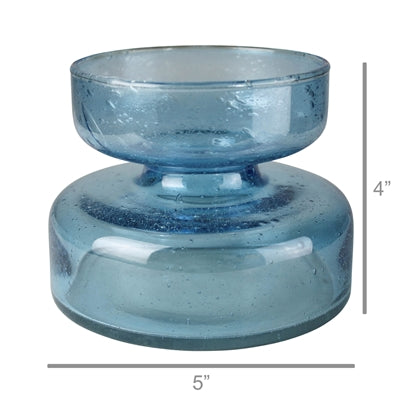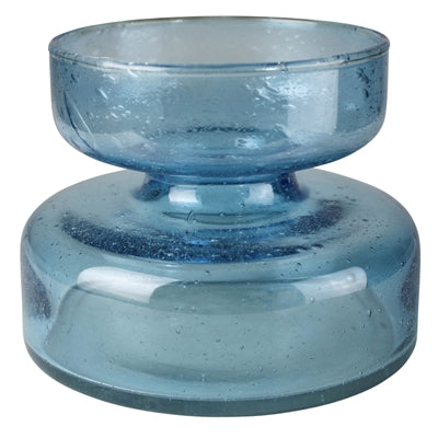 This seeded glass this bulb vase in a cool blue hue is uniquely shaped with a wide base to house the roots of forced bulbs - paperwhites are our favorite - indoors throughout the winter months.
