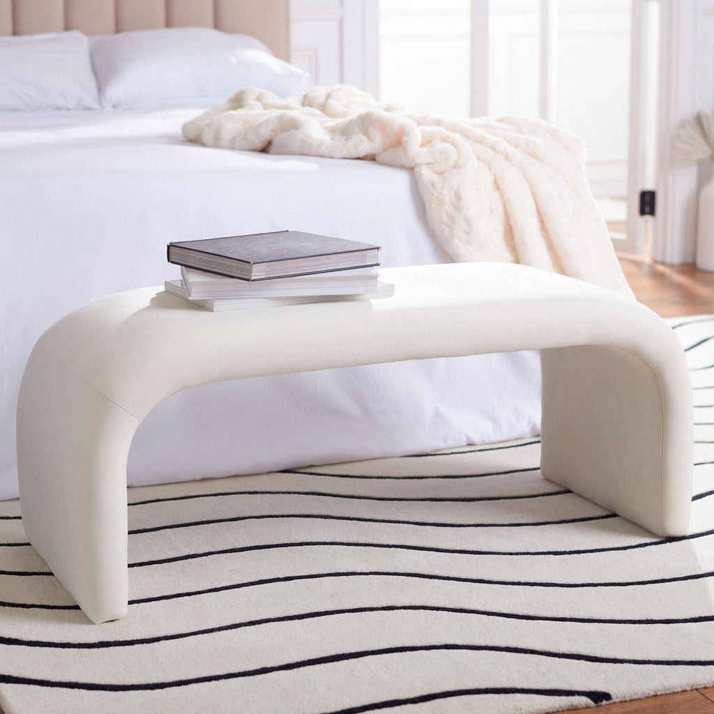 This Tenko Bench brings a luxurious feel to modern minimalist furnishings, making it the perfect finishing touch for today’s contemporary interiors. Tenko’s lavishly comfortable cream velvet beautifully spotlights its boldly curved silhouette, seamlessly accenting any room’s color scheme.