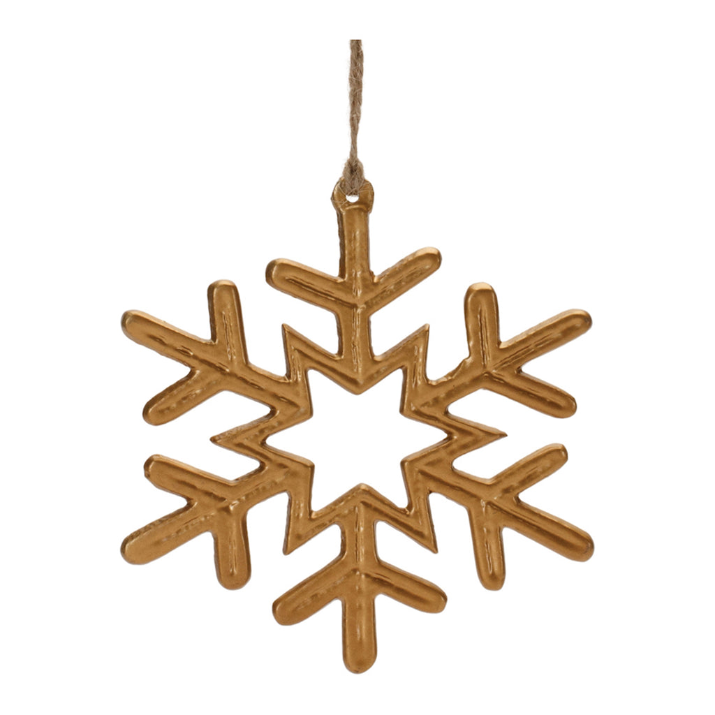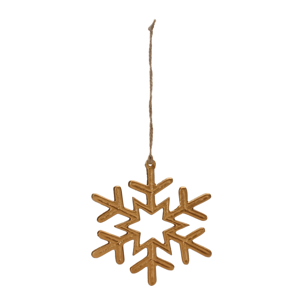 Adorn your Christmas tree with this stunning set of Metal Snowflake Ornaments. Featuring 12 pieces, the chic gold tones paired with the traditional snowflake design is the perfect combination to create a memorable display. The quality aluminum metal composition with delicate jute string hanger is sure to endure for seasons to come. Whether you're adding a touch of cheer to your home or gifting to a loved one, these ornaments will definitely bring holiday spirit to your home.