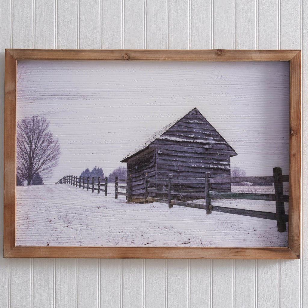 Quiet and wintry, our Snowy Barn Wall Art is a wonderful addition to farmhouse or holiday decor. It features a printed rustic barn in fresh fallen snow that provides a tranquil touch in a room. To hang, use its two sawtooth hangers.
