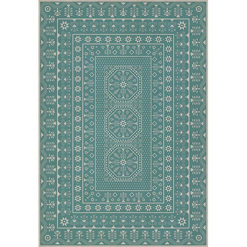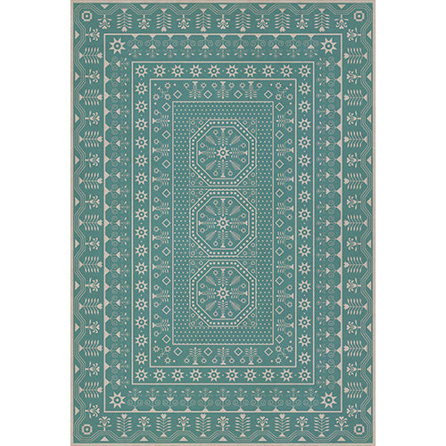 A Rain of Melody vinyl floor cloth from the Folk Art Museum Embroidery collection was inspired by vintage linoleum. Perfect for kitchens, baths, screened in porches and patios, the durable vinyl floorcloths are easy to clean and always lay flat. Vinyl floorcloths are made with two-ply vinyl with latex padded backing, designed to be fade-resistant in direct sunlight and durable against the elements but work best in controlled outdoor environments.