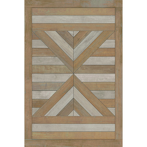 The Wake to Sanity vinyl floor cloth from the Norwegian Hoia collection was inspired by vintage linoleum and features a geometric pattern. Perfect for kitchens, baths, screened in porches and patios, the durable vinyl floorcloths are easy to clean and always lay flat. Vinyl floorcloths are made with two-ply vinyl with latex padded backing, designed to be fade-resistant in direct sunlight and durable against the elements but work best in controlled outdoor environments.