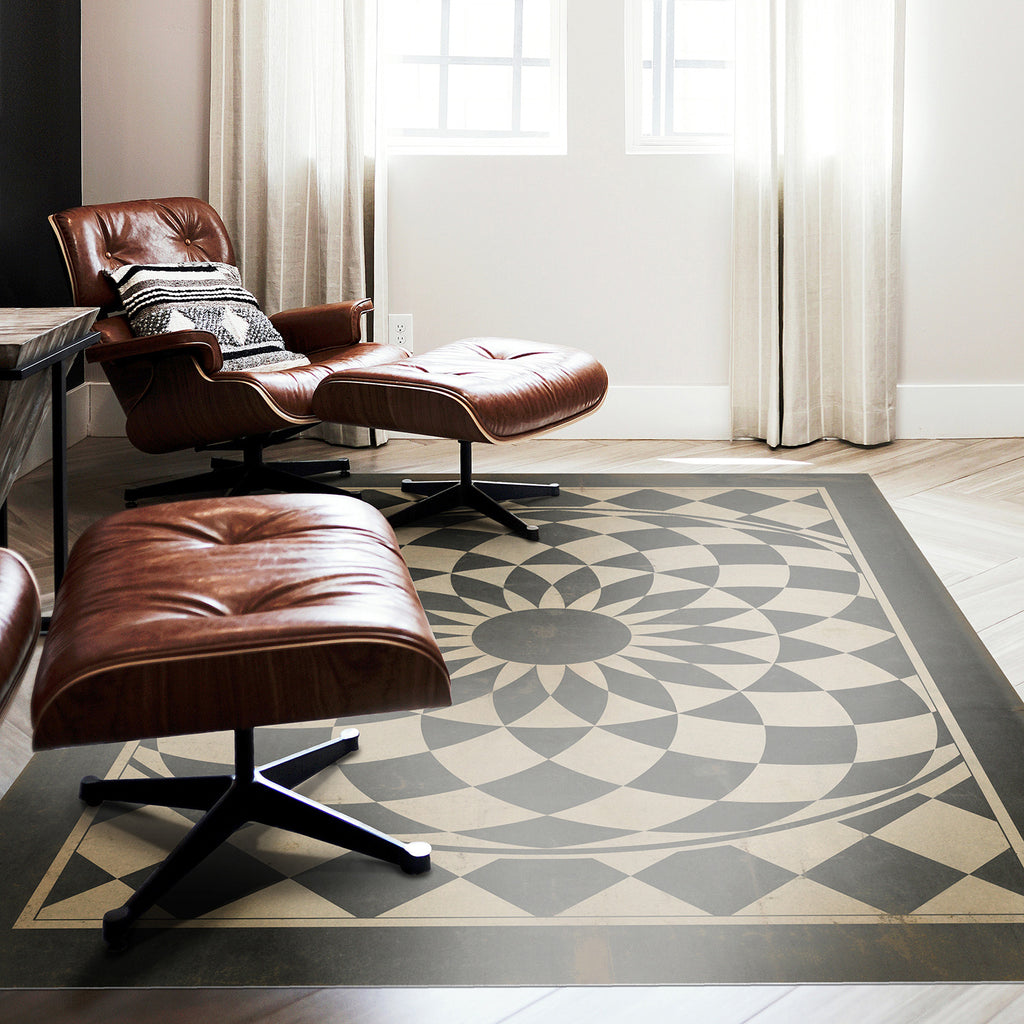 The We're All Mad Here vintage vinyl floor cloth from the Pattern 01 collection was inspired by vintage linoleum. Perfect for kitchens, baths, screened in porches and patios, the durable vinyl floorcloths are easy to clean and always lay flat. Vinyl floorcloths are made with two-ply vinyl with latex padded backing, designed to be fade-resistant in direct sunlight and durable against the elements but work best in controlled outdoor environments.