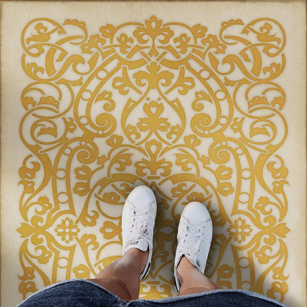 The Vivaldi vinyl floor cloth from the Pattern 77 collection was inspired by vintage linoleum and features a geometric pattern. Perfect for kitchens, baths, screened in porches and patios, the durable vinyl floorcloths are easy to clean and always lay flat. Vinyl floorcloths are made with two-ply vinyl with latex padded backing, designed to be fade-resistant in direct sunlight and durable against the elements but work best in controlled outdoor environments.