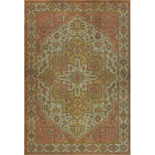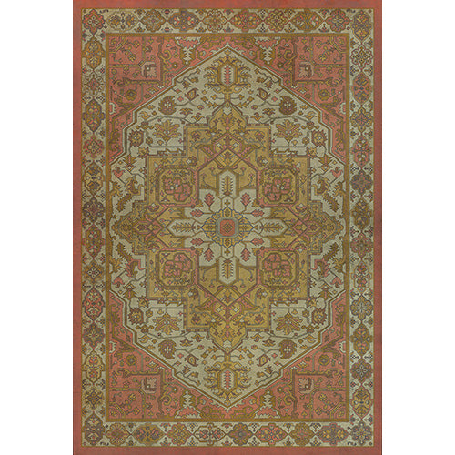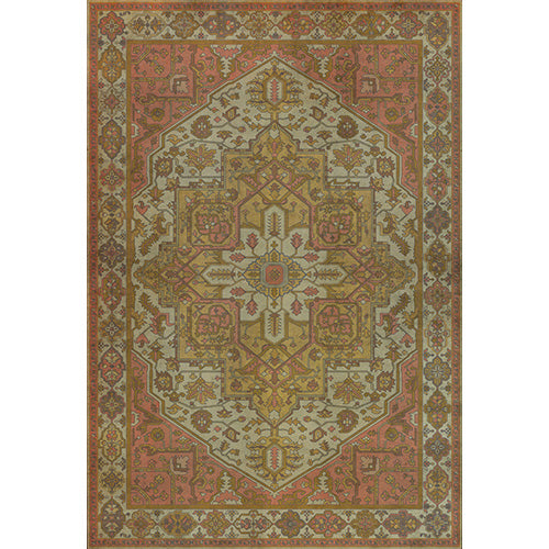 The Blanchefleur vinyl floor cloth from the Persian Bazaar Camelot collection was inspired by vintage linoleum. Perfect for kitchens, baths, screened in porches and patios, the durable vinyl floorcloths are easy to clean and always lay flat. Vinyl floorcloths are made with two-ply vinyl with latex padded backing, designed to be fade-resistant in direct sunlight and durable against the elements but work best in controlled outdoor environments.