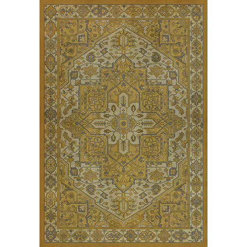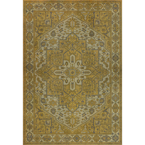 The Gwendolyn vinyl floor cloth from the Persian Bazaar Camelot collection was inspired by vintage linoleum. Perfect for kitchens, baths, screened in porches and patios, the durable vinyl floorcloths are easy to clean and always lay flat. Vinyl floorcloths are made with two-ply vinyl with latex padded backing, designed to be fade-resistant in direct sunlight and durable against the elements but work best in controlled outdoor environments.
