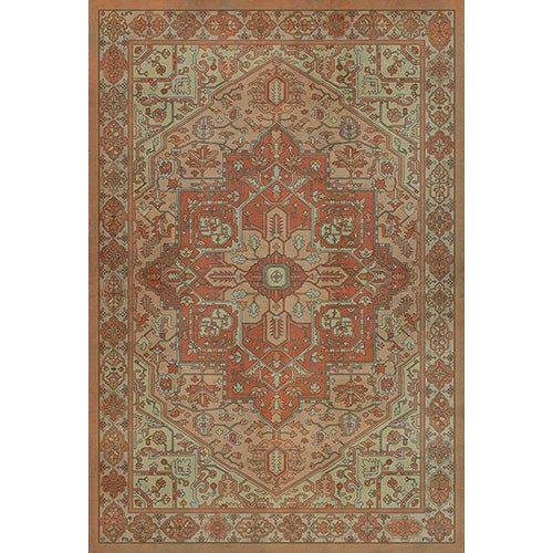 The Lady Ragnell vinyl floor cloth from the Persian Bazaar Camelot collection was inspired by vintage linoleum and features a Persian Bazaar flair. Perfect for kitchens, baths, screened in porches and patios, the durable vinyl floorcloths are easy to clean and always lay flat. Vinyl floorcloths are made with two-ply vinyl with latex padded backing, designed to be fade-resistant in direct sunlight and durable against the elements but work best in controlled outdoor environments.