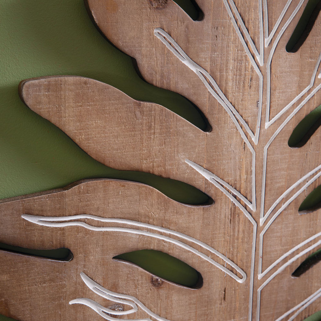Bring the islands to your home with this tropical leaf wall decor. This wooden carving is simplistic and nature-inspired. To hang, use its triangle hanger.