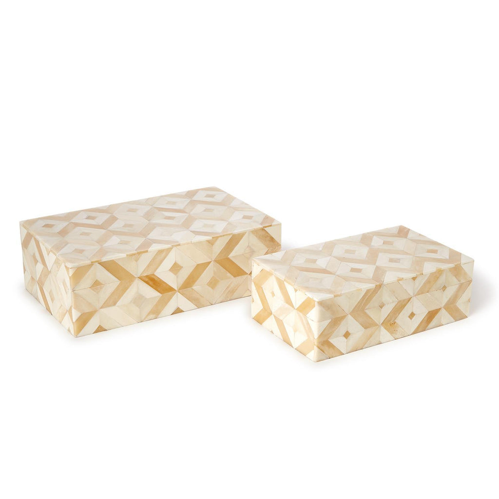 Add a touch of organic elegance to your space with the St Mark Set of 2 Covered Boxes. Crafted from a combination of bone and MDF, these handcrafted boxes exude a natural charm that is perfect for bringing a hint of the outdoors inside. Use them to store jewelry, keepsakes, or simply as decorative accents on a shelf or console. These versatile boxes are not only aesthetically pleasing but also functional, adding a sense of sophistication to any room.